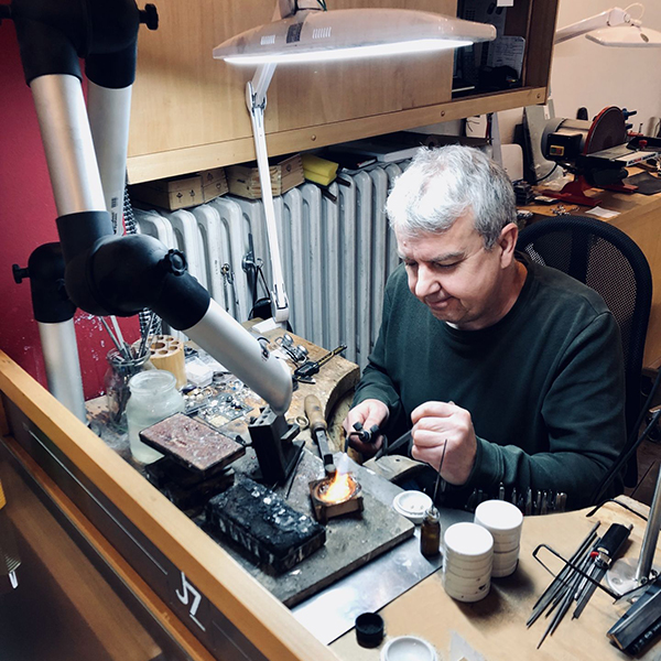 Jochen Zimmer hace pasar lentamente el quemador sobre el trozo de oro hasta que esté completamente líquido. A continuación, el maestro orfebre vierte la masa en un crisol. Necesitará muchas más horas de trabajo hasta que el oro viejo se transforme en una nueva pieza de joyería elaborada individualmente.